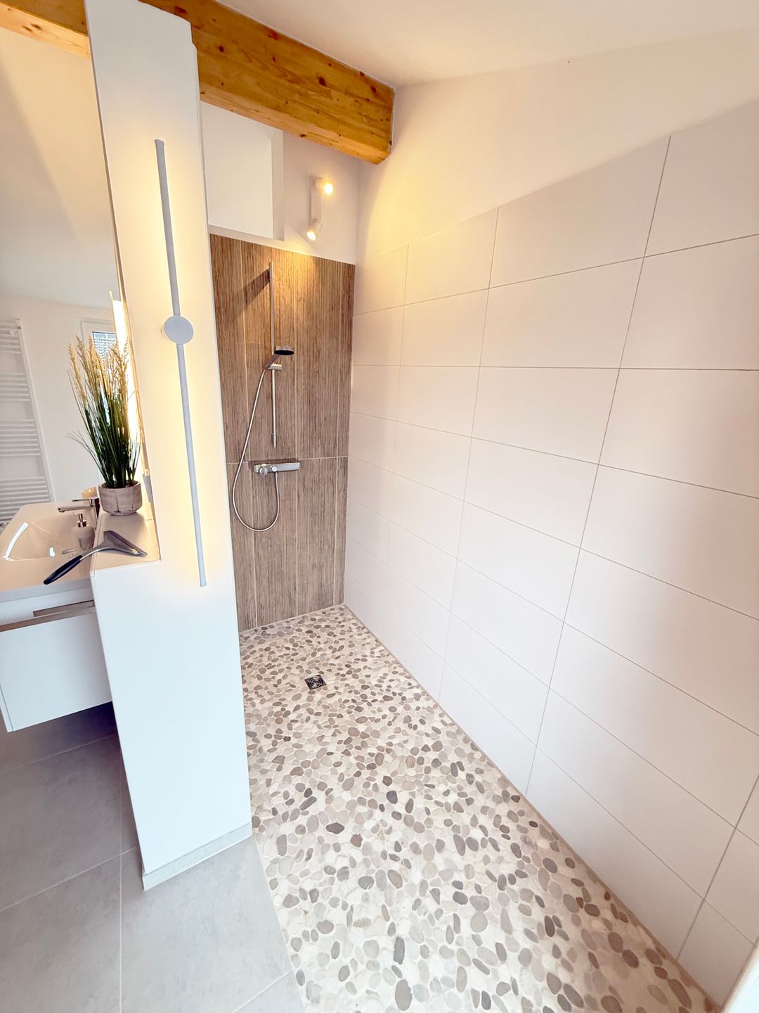 große Dusche und eine großzügige Badewanne. Abgerundet und komplettiert wird