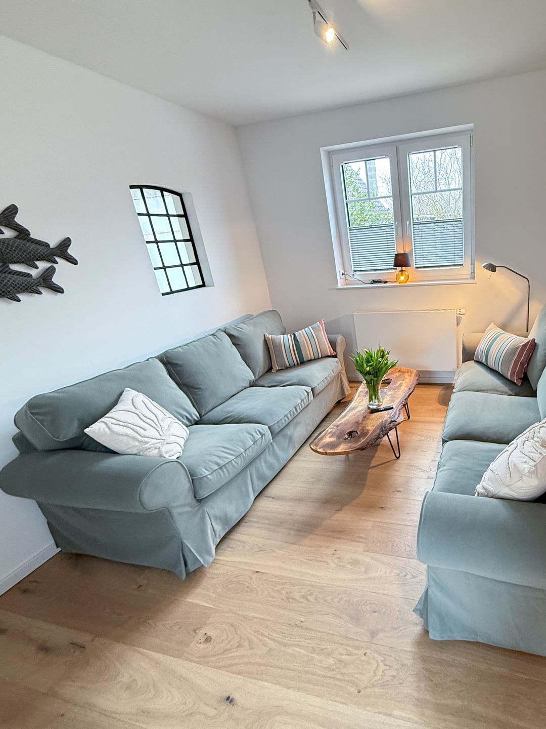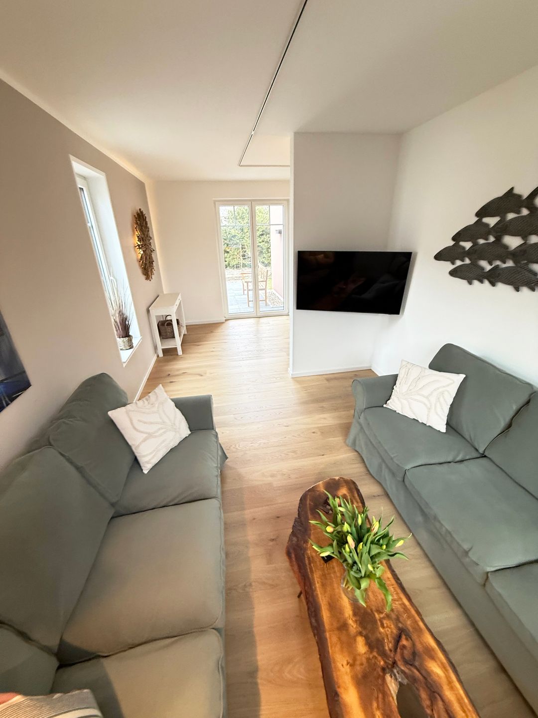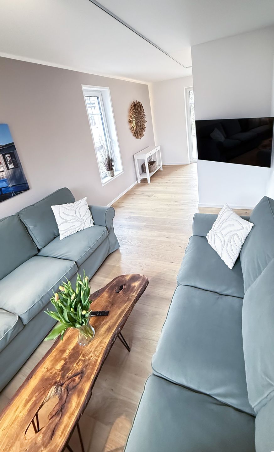 Wohnzimmer laden 2 Sofas zum Verweilen ein und für die Unterhaltung steht hier
