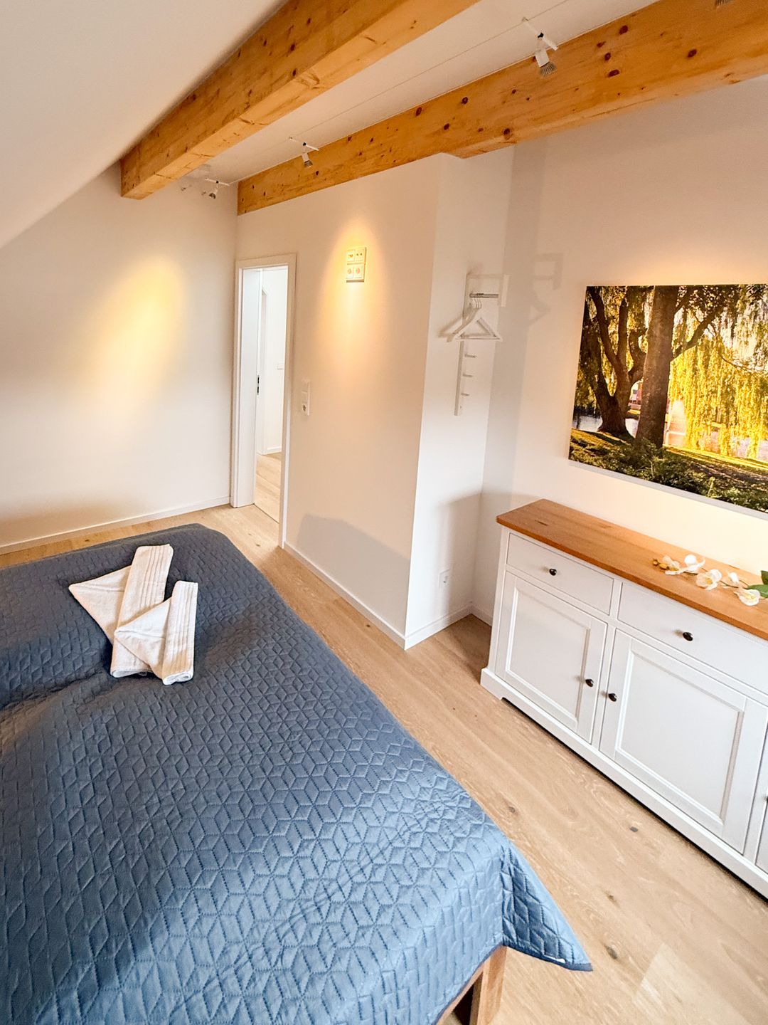 Balken sorgt für ein großes Raumgefühl. Die beiden bodentiefen, aber dennoch