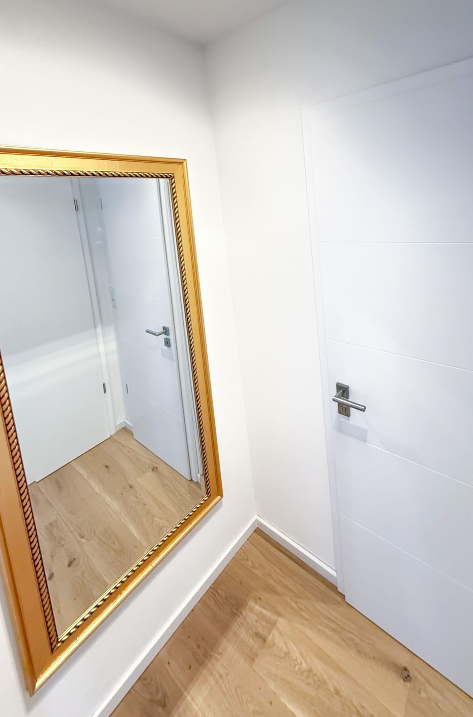 Wäscheständer und einen Staubsauger. Eine Garderobe, ein Ganzkörperspiegel und